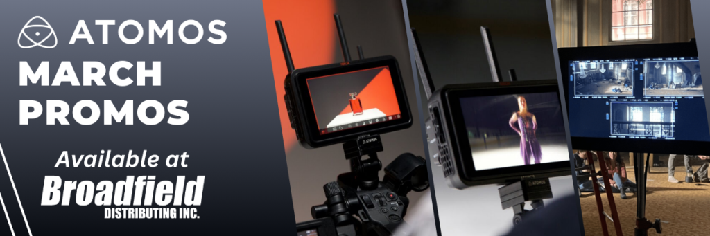 Take advantage of Atomos March promotions now available at Broadfield! Save on the Ninja TX and Ninja TX GO, plus get a free accessory kit with Ninja and a free sunhood with SUMO 19SE bundles. These promos are running from March 1st – 31st, 2026. Don’t miss these limited-time offers—call your Broadfield sales rep at 800-634-5178 for details today.