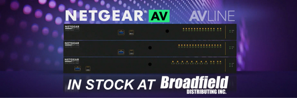 NETGEAR switches are in stock at Broadfield! Contact your Broadfield sales rep at 800-634-5178 for more information.