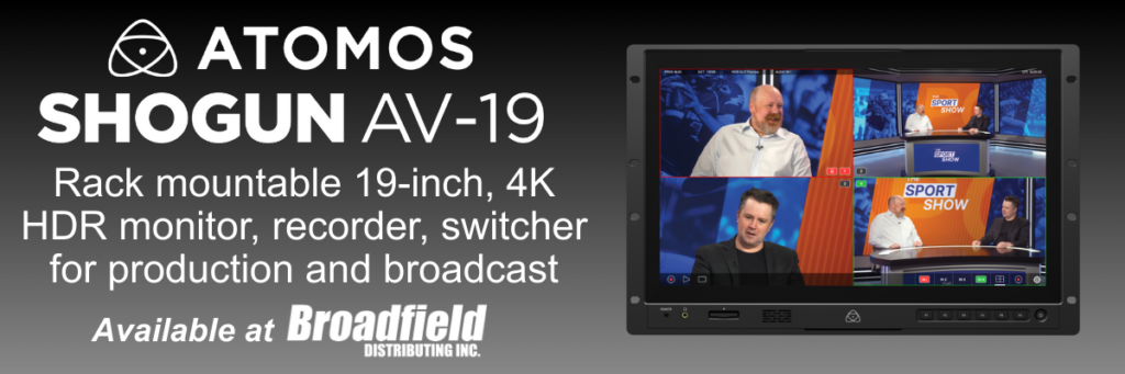 19-inch 4K HDR DCI-P3 7RU rackmount monitor-recorder-switcher for professional live production and broadcast. With 4 SDI inputs, ISO recording, live multi-camera switching, NDI HX3 over Ethernet, ProRes/DNx/ProRes RAW, XLR audio, and advanced monitoring tools, it delivers a complete Monitor-Record-Switch workflow for modern studio and outside broadcast environments. Available now for pre-order at Broadfield Distributing, give your sales rep at call at 800-634-5178 for more information!