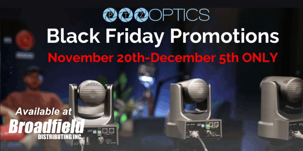 PTZOptics has announced their Black Friday promo running from November 20th through December 5th, 2025 on their popular PTZ and Studio cameras. Contact your Broadfield Sales Rep at 800-634-5178 for more information and your rebate form.