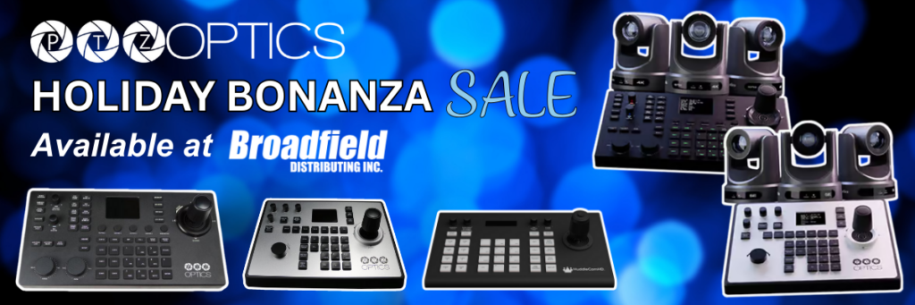 From December 15th through December 31st 2025, PTZOptics is launching the PTZOptics Holiday Bonanza: a limited-time, high-impact promotion designed to help you close out the year strong and capture every remaining opportunity. Contact your Broadfield Sales Rep at 800-634-5178 for more information!