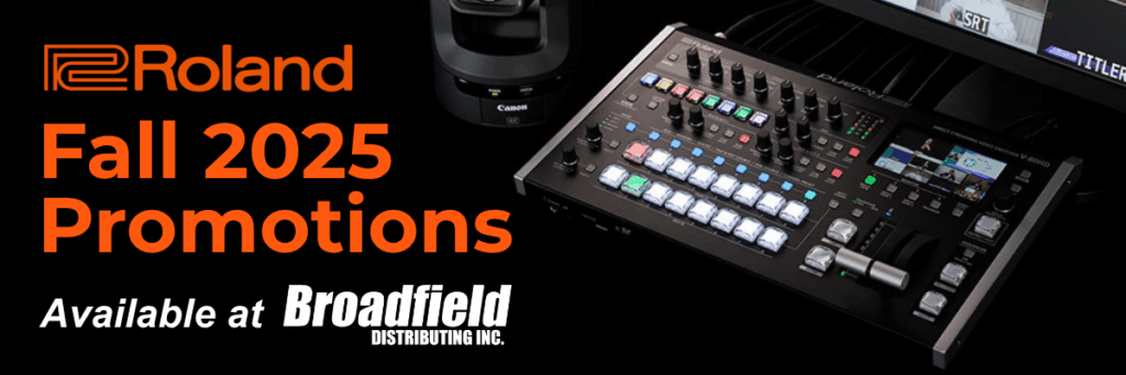 Roland has announced their Fall 2025 promotion, featuring special pricing on their Streaming Mixers, Video Switchers, and Instant Replay. This limited-time offer runs from November 6th, 2025 through January 7th, 2026. Contact your Broadfield Sales Rep at 800-634-5178 for details and ordering information.