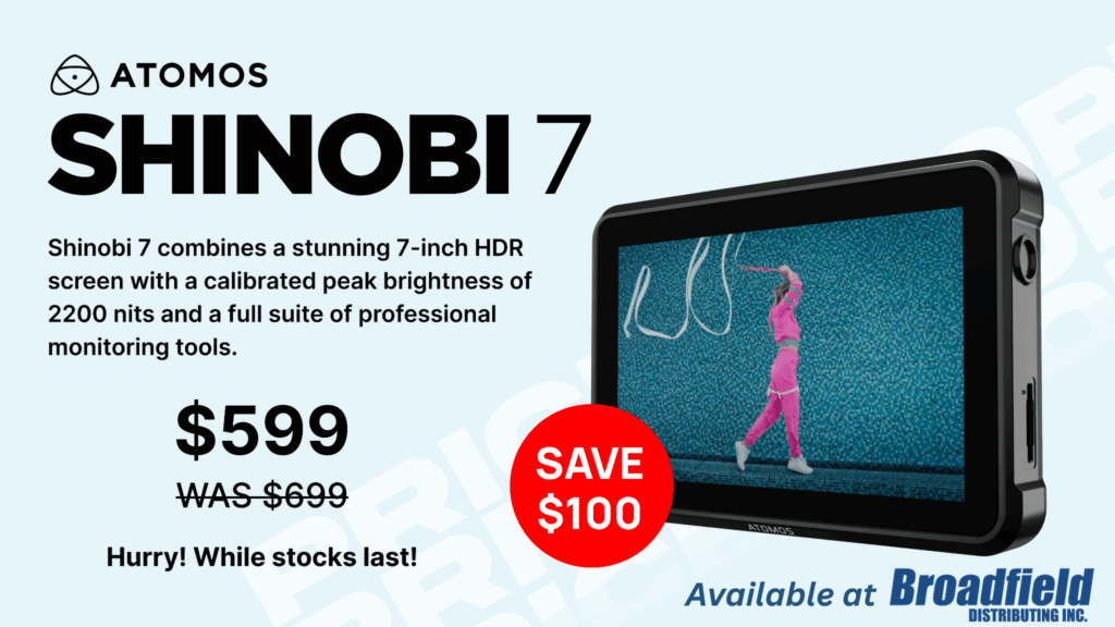 Shinobi 7 combines a stunning 7-inch HDR screen with a calibrated peak brightness of 2200 nits and a full suite of professional monitoring tools. Contact your Broadfield sales rep at 800-634-5178 for more info