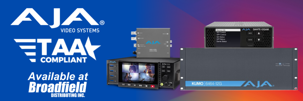The entire line of AJA products is fully TAA compliant, making it easier to meet federal purchasing requirements and secure government contracts with confidence. Whether you’re upgrading existing workflows or specifying new systems, AJA delivers trusted performance backed by full compliance. Broadfield is your source for AJA—contact your Broadfield sales rep today at 800-634-5178 for more information and expert guidance.