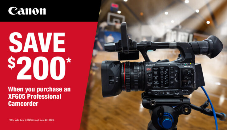 Save $200 on Canon XF605 camcorder with instant rebate now thru 6/22/25