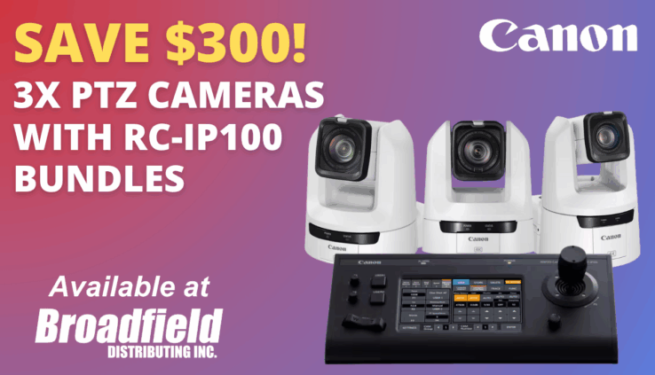 Canon has announced new PTZ camera and controller bundles with built-in savings. These limited-time bundles include the CR-N350, CR-N400, and CR-N700 PTZ cameras and are available from February 2 through February 28, 2026. Contact your Broadfield sales rep at 800-634-5178 to learn more.