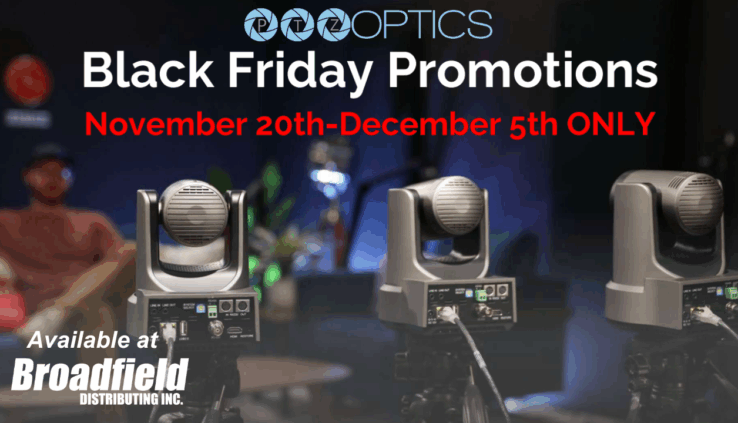PTZOptics has announced their Black Friday promo running from November 20th through December 5th, 2025 on their popular PTZ and Studio cameras. Contact your Broadfield Sales Rep at 800-634-5178 for more information and your rebate form.