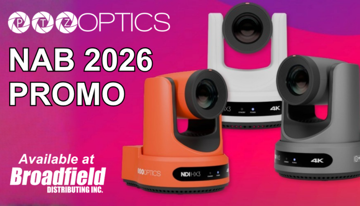 To celebrate NAB, PTZOptics is offering limited-time savings on their top broadcast solutions, fully funded by PTZOptics. Contact your Broadfield sales rep at 800-634-5178 for more information!