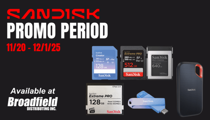 SanDisk recently announced their new promo period running from November 20th thru December 1st, 2025. Contact your Broadfield sales rep at 800-634-5178 for more info.