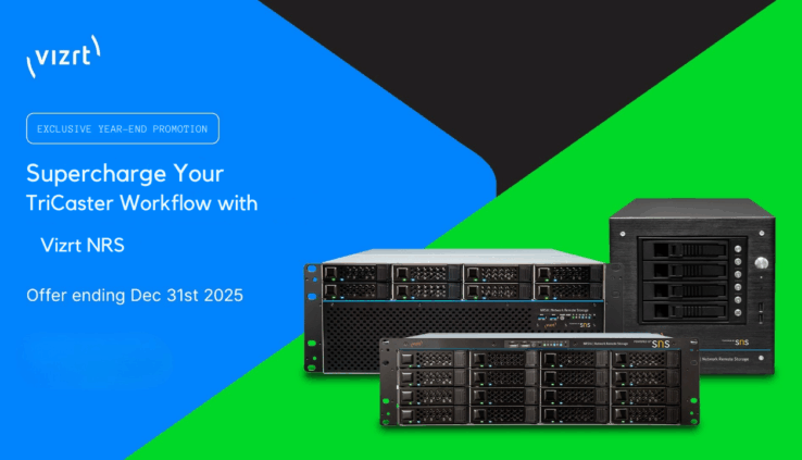 Your TriCaster® is already powerful. Adding Vizrt NRS (Network Remote Storage) takes it further – streamlining workflows, organizing media, and speeding up production. Contact your Broadfield Sales Rep at 800-634-5178 for more information on this offer.